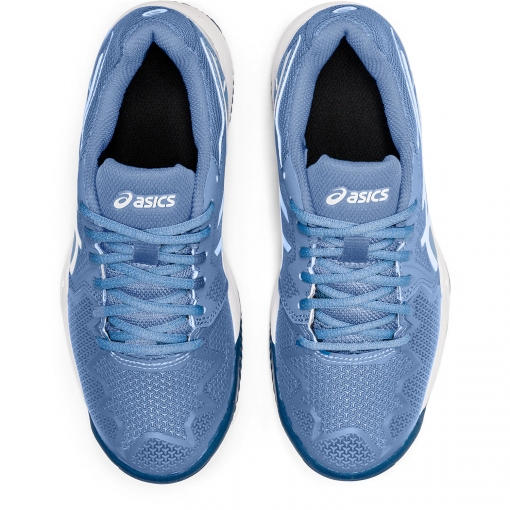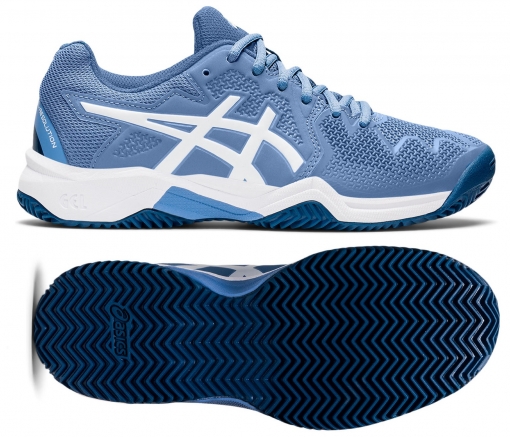 Dětská tenisová obuv GEL-RESOLUTION ™ 8 CLAY GS, která vytváří zrychlenou reakci s přirozeným pocitem blízkým terénu, umožňuje mladým sportovcům sebevědomě přistupovat k jejich zápasům na antukových kurtech