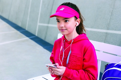 Růžová lehká prodyšná dětská kšiltovka, pevný kšilt, tmavý znak Babolat. Dobře odvádí pot a rychle schne.