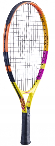 tenisová raketa v barvách RAFAELA NADALA, které ocení všichni malí tenisoví hráči, kteří vybírají nádherně barevnou a lehkou raketu. Je vhodná pro tenisové začátky dětí kolem 4 let s výškou asi 100 cm. Délka je ca 48,3 cm.