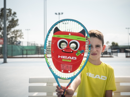 Chlapecká tenisová raketa pojmenovaná podle Novaka Djokovice pro děti, které vybírají barevnou a lehkou raketu. Je vhodná pro tenisové začátky dětí kolem 3 let s výškou asi 100 cm. Délka je ca 48,3 cm.