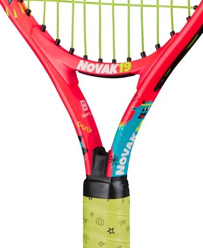Dětská tenisová raketa nejen pro fanoušky Novaka Djokovice, kteří vybírají lehkou raketu. Je vhodná pro tenisové začátky dětí ve věku 9-10 let s výškou do 140 cm. Délka je ca 58,5 cm.
