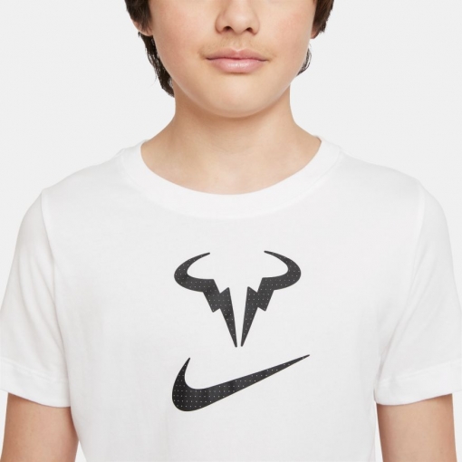 Bílá barva, na předním díle je černý buvolí znak R. Nadala spolu s výrazným znakem Nike.