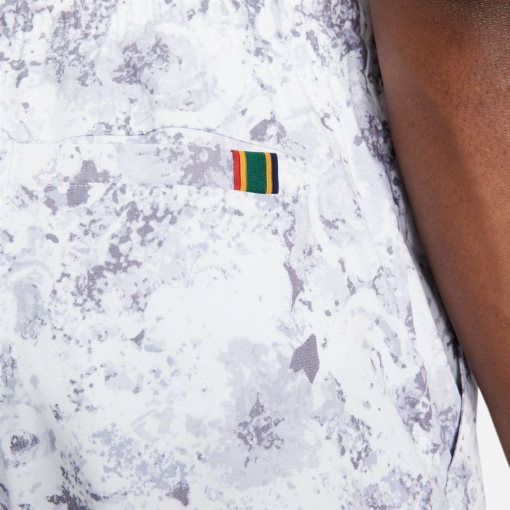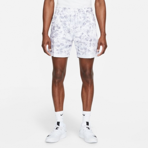 Šortky NikeCourt Dri-FIT jsou vyrobeny z elastické tkaniny odvádějící pot a mají složitý květinový potisk inspirovaný květinami na stěnách a podlahách turnaje v Londýně.