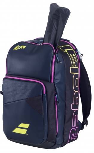 Nově je v klasickém tvaru, i když o něco větší a širší. Pro ty, co jezdí na kole, jistě ocení hrudní přesku. Kdo chce vzít maximálně 3 rakety na tenis a nechce se mu nosit velký bag, tak Babolat PURE AERO RAFA backpack g2 je ideální volbou. Rakety se dávají do přední kapsy a do ochrany přes rukojeť se vejdou 2 rakety. Toto řešení je velmi praktické, protože při jízdě na kole/ koloběžce Vás nebude bouchat raketa.