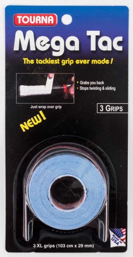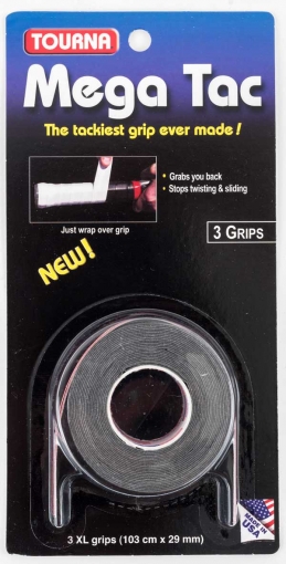 Tourna Mega Tac je vytvořen s vynikající lepivou vrstvou, která také minimalizuje prokluzování. Někteří hráči preferují lepkavý grip, nyní můžete mít to nejlepší z obou světů ...Lepkavý grip, který absorbuje pot a neklouže.